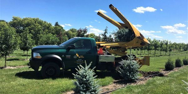 Staking is normally not necessary if the correct size tree transplanter is used. In some cases, in open or windy areas, the trees may need to be staked for one year.